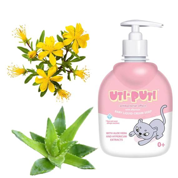 Детское мыло Uti-Puti — это мягкое средство для ежедневного ухода за кожей малыша. Натуральные компоненты, такие как алое вера и зверобой, успокаивают, увлажняют и защищают нежную кожу ребёнка от раздражений. Не содержит парабенов. Подходит для частого применения.